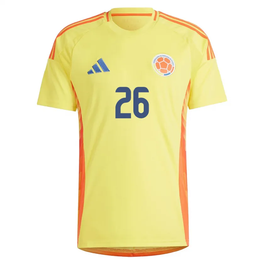 Danxen Femme Maillot Colombie Gustavo Puerta #26 Jaune Tenues Domicile 24-26 T-Shirt
