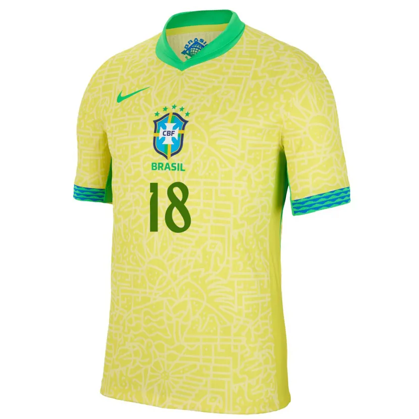 Danxen Homme Maillot Brésil Antony #18 Jaune Tenues Domicile 24-26 T-Shirt